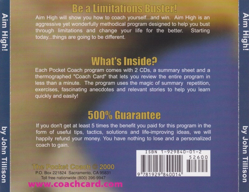 Another client who logged a lot of hours at Soundburst Digital while I was at 1515 T Street, was John Tillison, an exciting motivational speaker who recorded a series of spoken word recordings (complete with sound effects and music beds) that encouraged the listener to become their best selves and achieve their goals through self-coaching and referral to his CD’s and “Pocket Coach Card” which summarized his advice with a bullet pointed “Ten-Point Checklist for Success” included in each package, along with a 500% money-back guarantee! John was very sincere in his approach to helping people realize their highest potential.