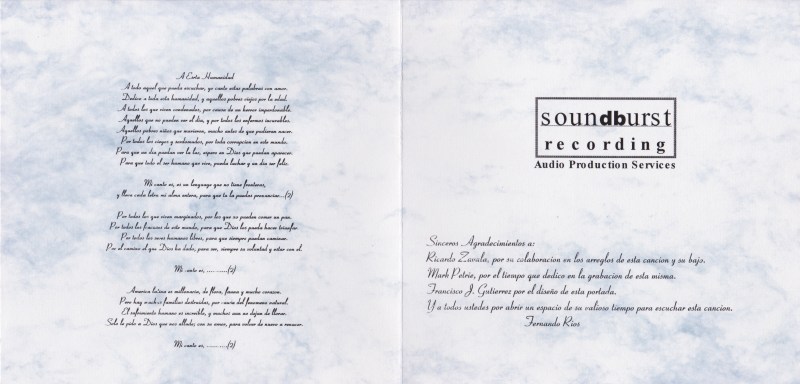 I had a few Spanish speaking clients, including a band specializing in Norteño, or the music of Northern Mexico, and an extremely gifted singer/songwriter named Fernando Rios, who recorded one of the most beautiful songs I had the pleasure to help produce, “A Esta Humanidad”. If I can find him, and get permission, I will be posting an MP3 of one of the versions we recorded, here.