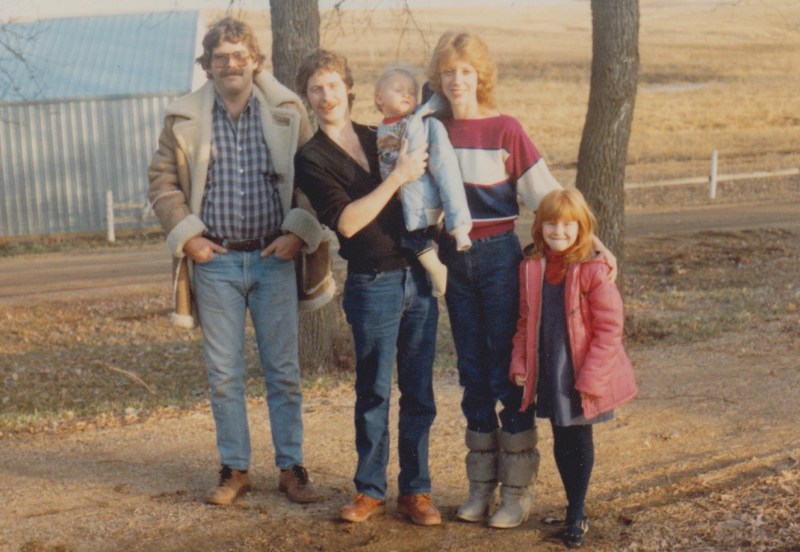 Here’s a photo with Deb, her daughter Angie, Zach at about 1 year, and Rob Harrison visiting us at a farmhouse we were renting outside Sioux Falls, South Dakota, a couple of years later.
