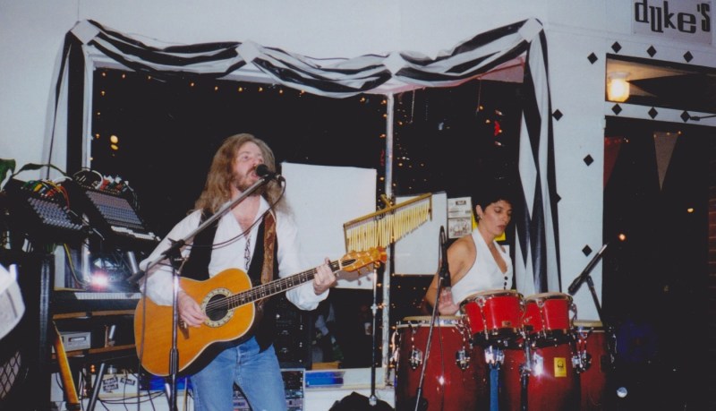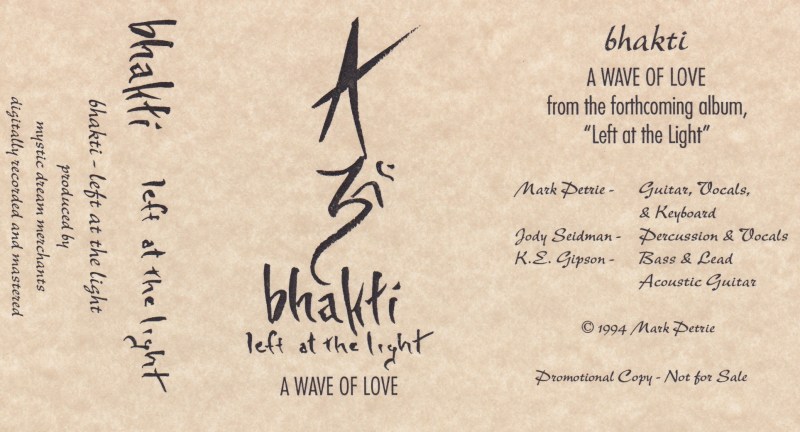 Shortly after this show, Jody developed some serious Carpal tunnel syndrome pain and was unable to continue playing congas. We fell out of touch later, and Bhakti continued mainly as a recording project. I just recently became aware that Jody subsequently lost a ten-year battle with cancer and died on December 17, 2014. She was a beautiful and talented woman, and I feel very lucky to have known and worked with her.